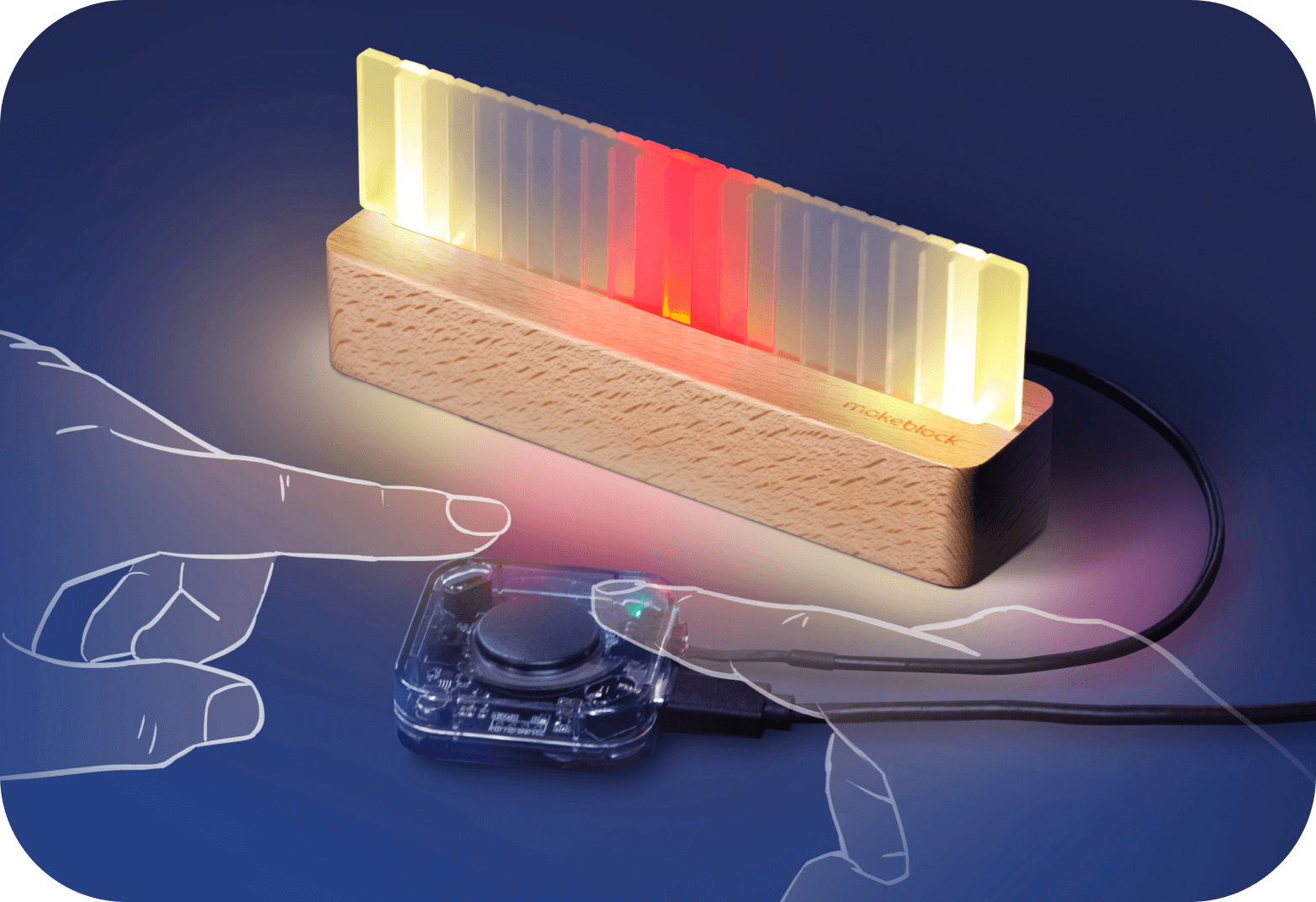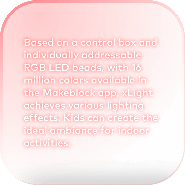 Start from scratch and bring your kids' ideas to life. By using mblock software for graphical programming, each LED bead lights up in a unique color and brightness. Kids can easily create their own lighting patterns, which gives them a lot of freedom to unleash their creativity in the art of lighting.